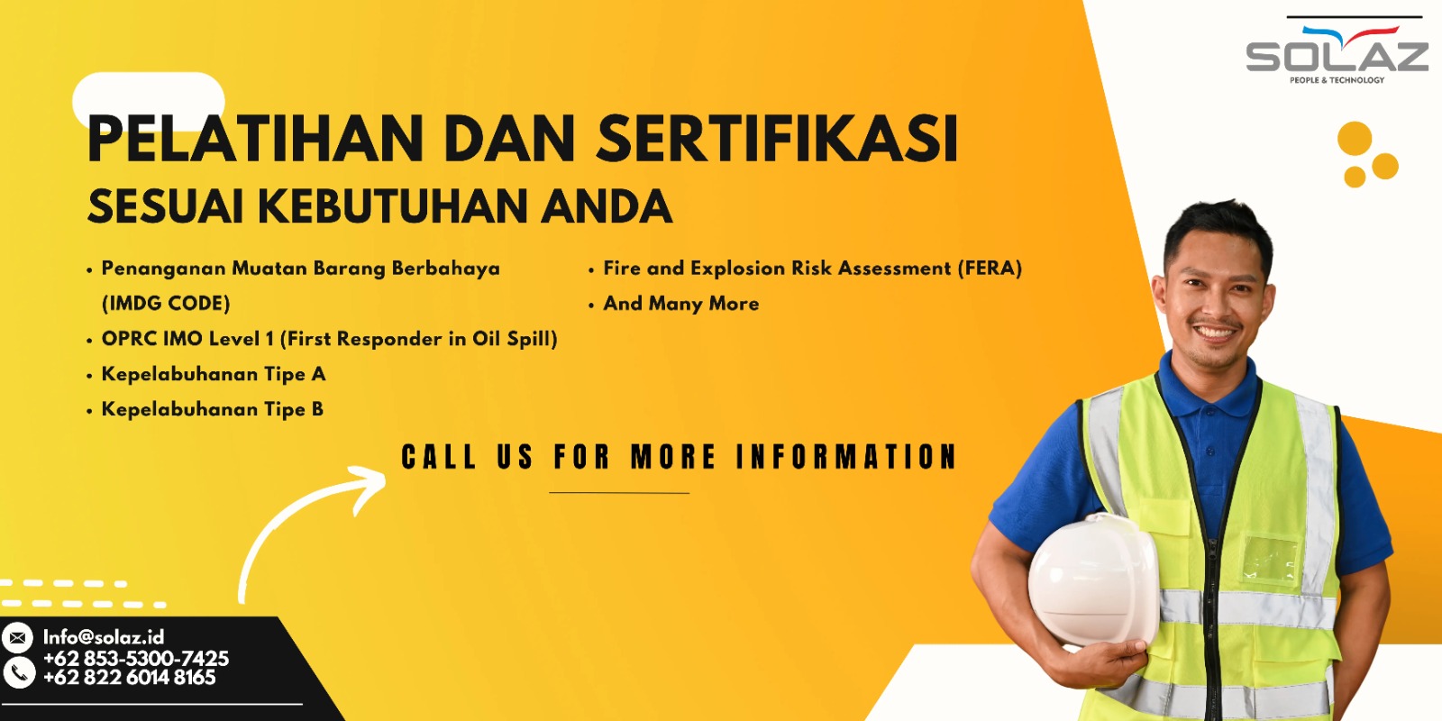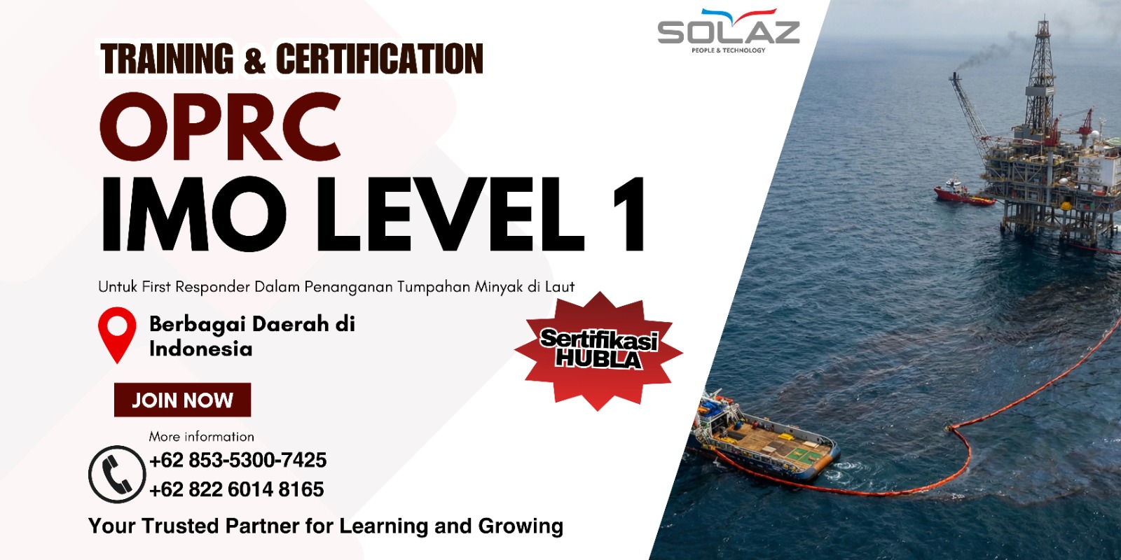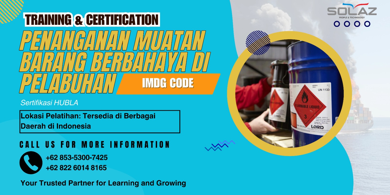 Berdiri sejak Tahun 2008, SOLAZ Learning & Consulting (PT.Total Mora Sukses) yang telah mendapatkan persetujuan dari Direktorat Jenderal Perhubungan Laut, Kementerian Perhubungan RI (No. KP-DJPL 594 Tahun 2022 Tanggal 19 Agustus 2022) sebagai lembaga pendidikan resmi dan bersertifikasi untuk International Maritime Dangerous Goods (IMDG) Code Training di Indonesia